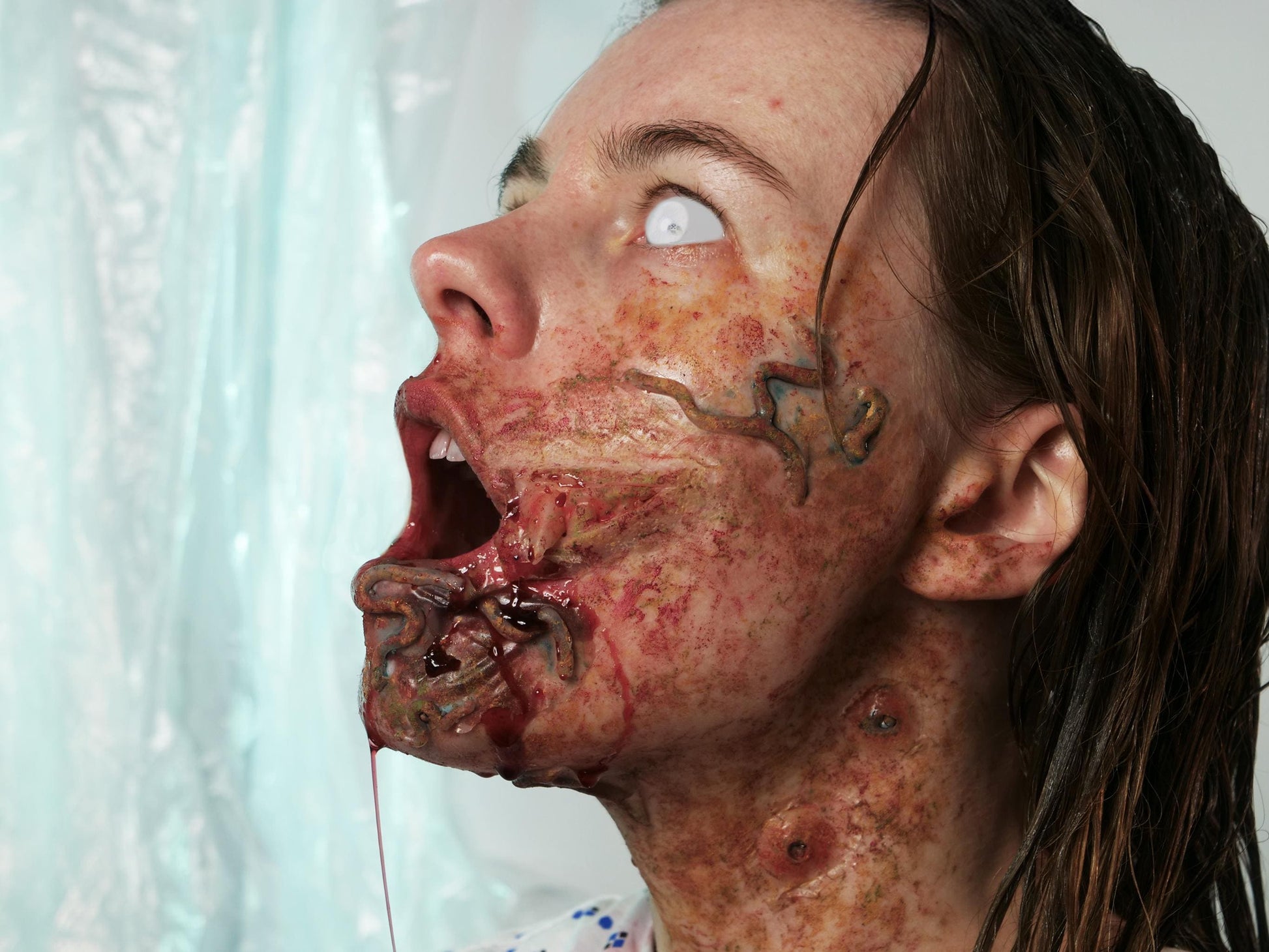 All prosthetics are molded from professional SFX-grade materials with individually hand-painted vascular detail, ensuring organic irregularity and realism between units. Each element is deliberately shaded to reflect advanced hemoviral spread and blood depletion.