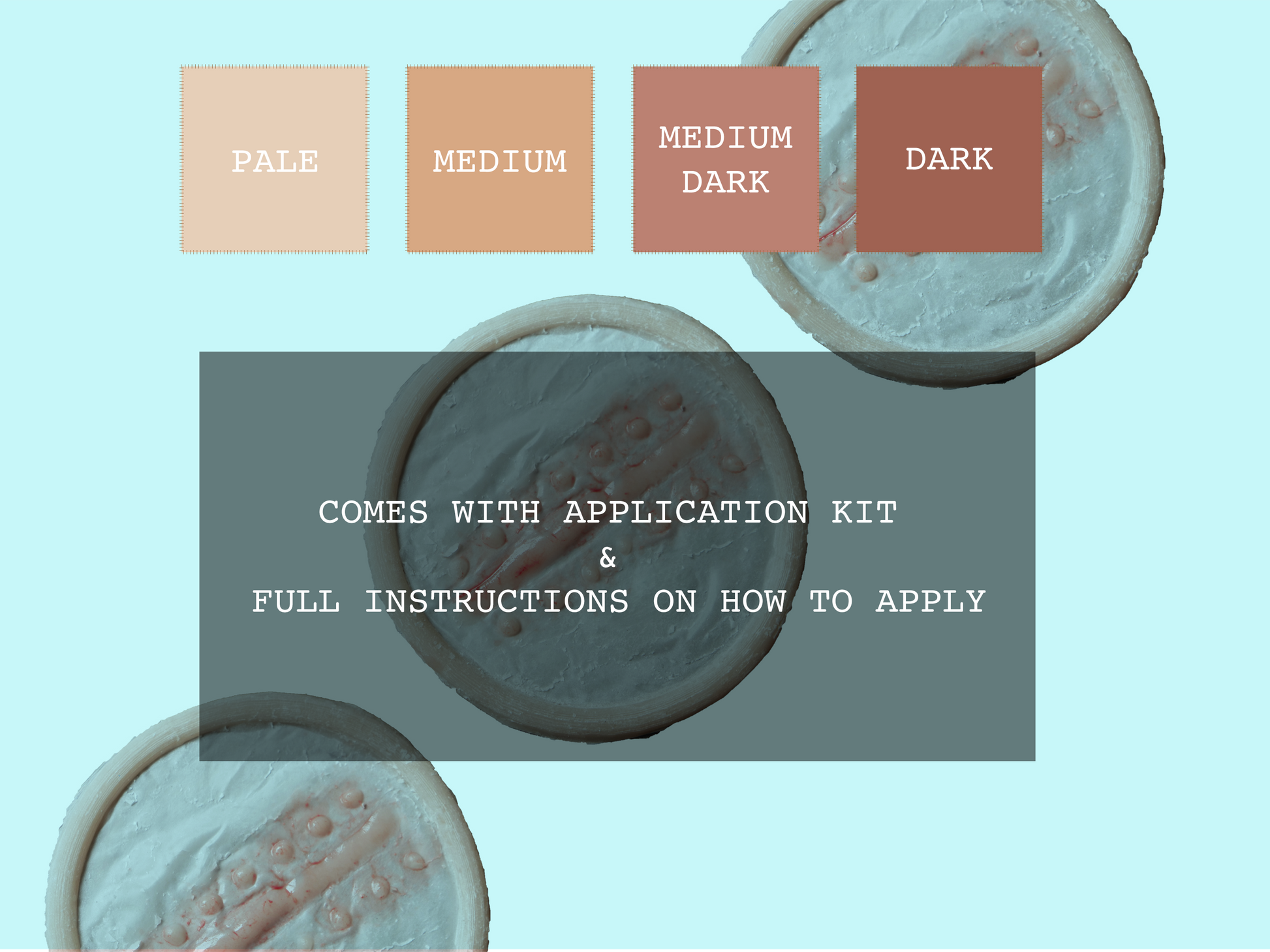 Suture Scar records the aftermath of an unauthorised closure procedure, leaving behind a raised, linear suture scar with irregular healing patterns. This prosthetic replicates surgical stitching remnants with unsettling accuracy; puckered edges, tension lines, and subtle tissue distortion preserved exactly as observed.